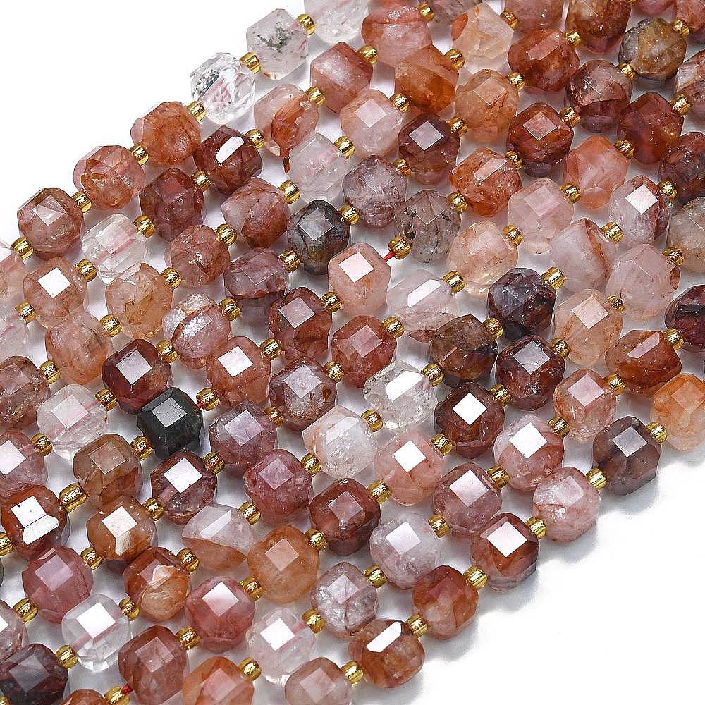 Нити из натурального красного гематоидного кварца/железистого кварца, с бисером, граненый стол, вырезанный куб