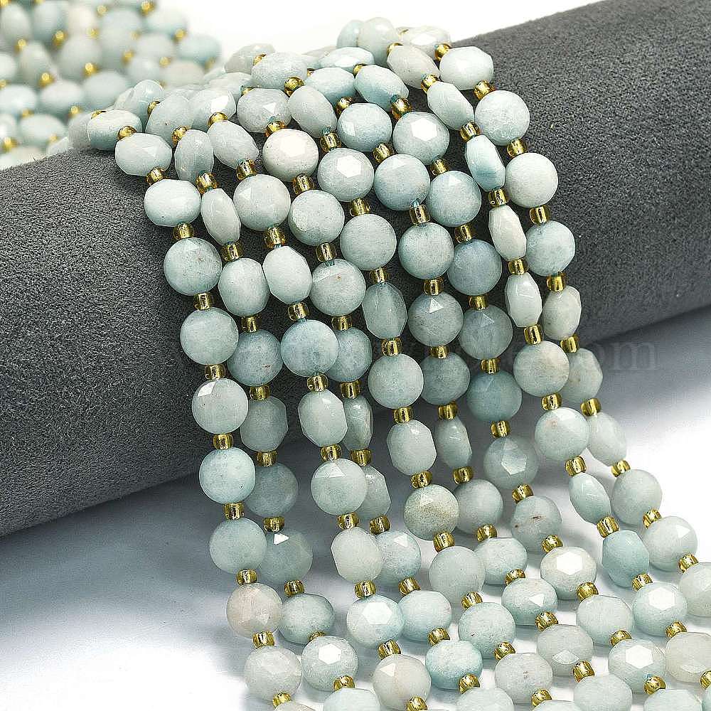 Нити бусин из натурального кварца окрашенные, граненый пятиугольный разрез, плоско-круглые, с бисером