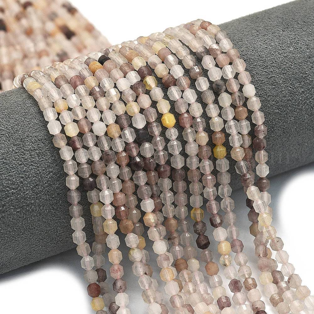 Природного кварца нитей бисера, энергетическая призматическая огранка с двойными концами бусины, граненые двухконусные