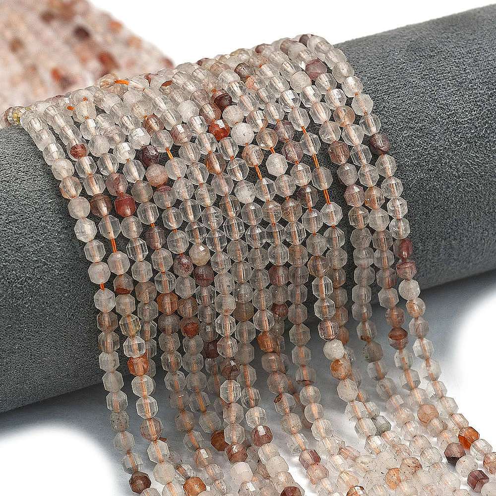 Нити из натурального красного гематоидного кварца/железистого кварца, энергетическая призматическая огранка с двойными концами бусины, граненые двухконусные