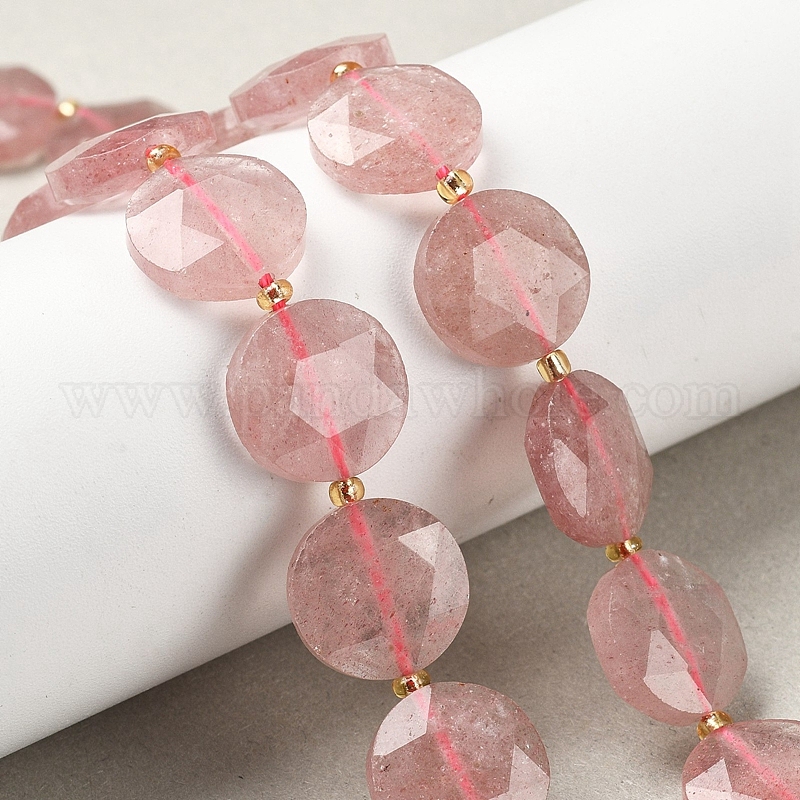 Природного кварца клубники нитей бисера, граненый шестиугольный разрез, плоско-круглые, с бисером