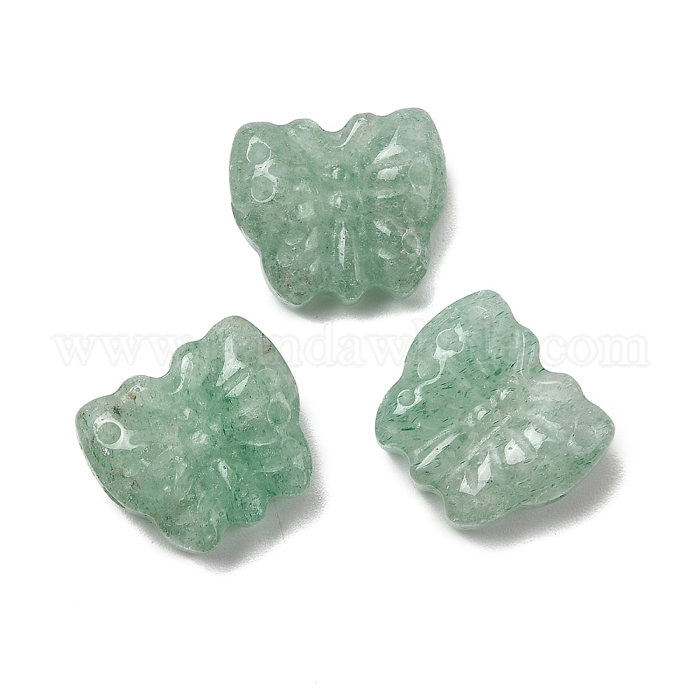 Резные бусины из натурального зеленого клубничного кварца, бабочка
