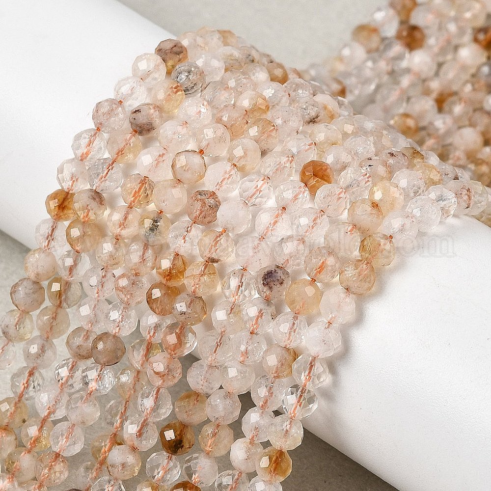 Природный желтый кварц нитей бисера, граненые, круглые