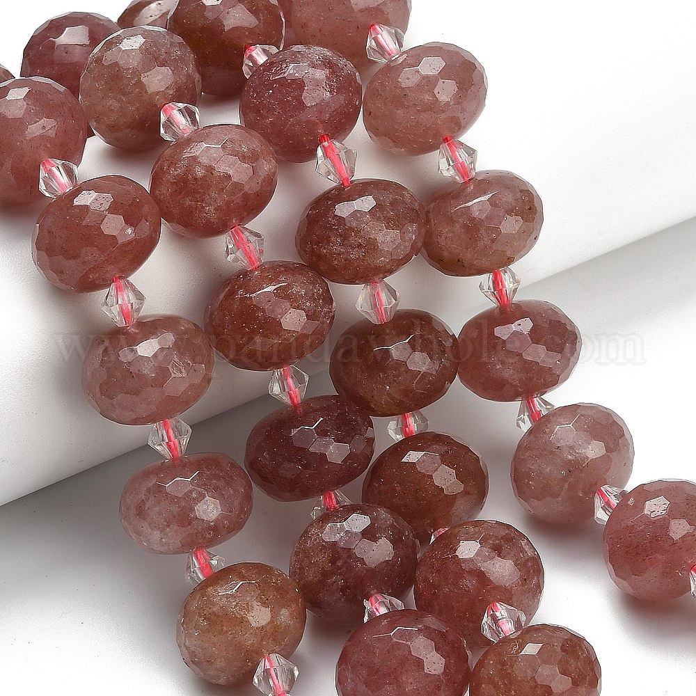 Природного кварца клубники нитей бисера, рондель, граненые, со стеклянными бусинами