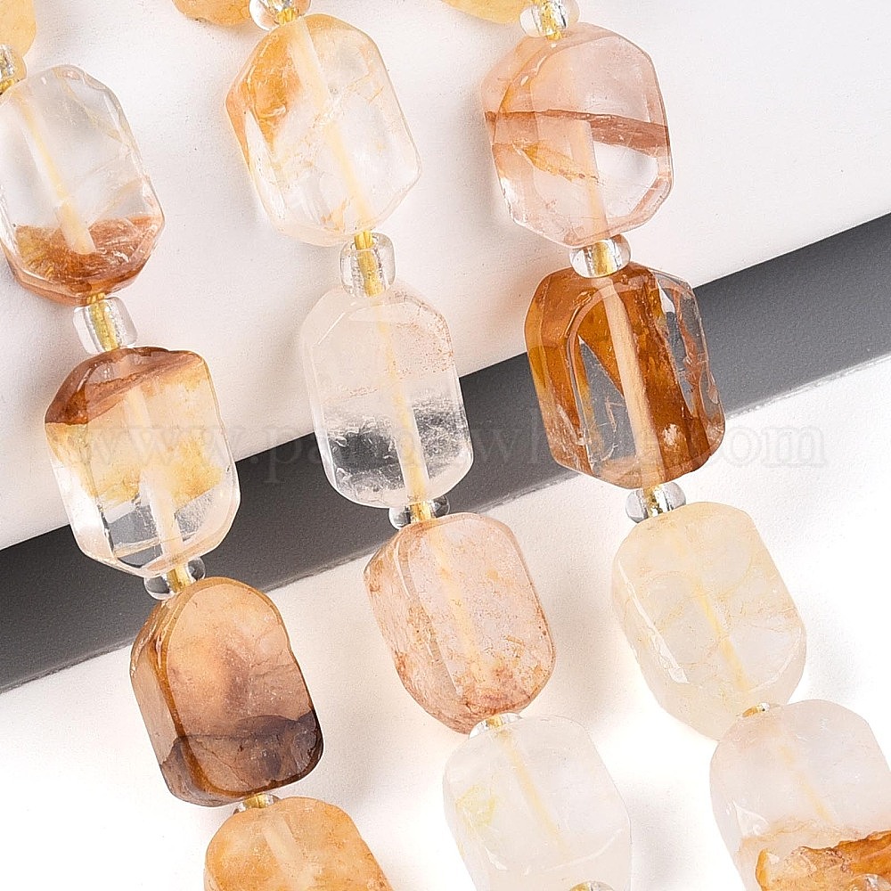 Натуральный желтый гематоидный кварц/золотые целебные кварцевые бусины нити, с бисером, прямоугольные