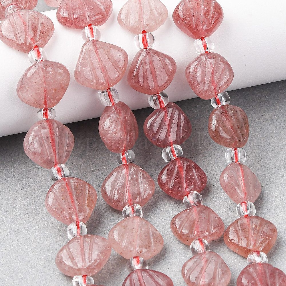 Нити резных бусин из натурального клубничного кварца, формы раковины, с бисером