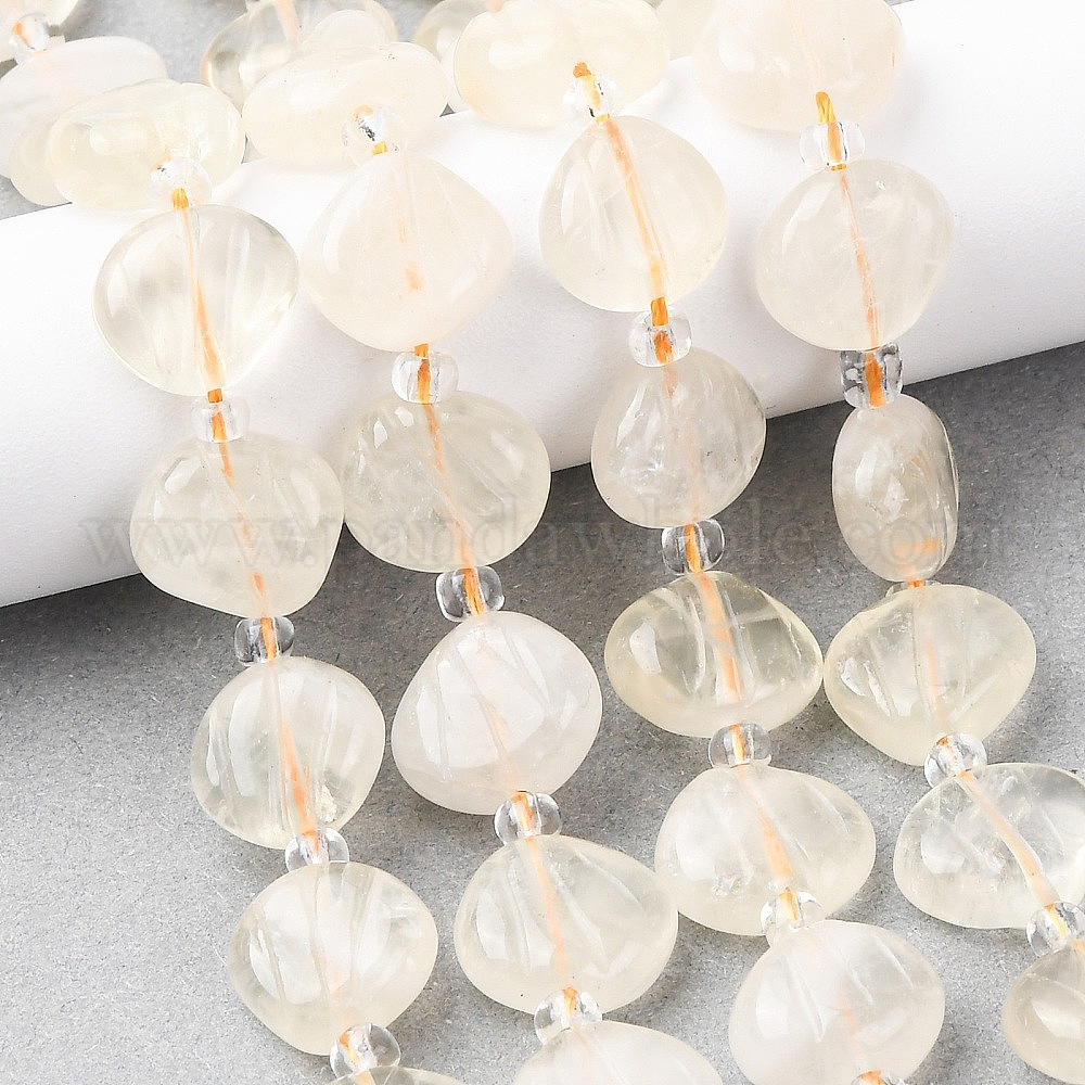 Нити из резных бусин из натурального лимонного кварца (обработанных термически)., формы раковины, с бисером