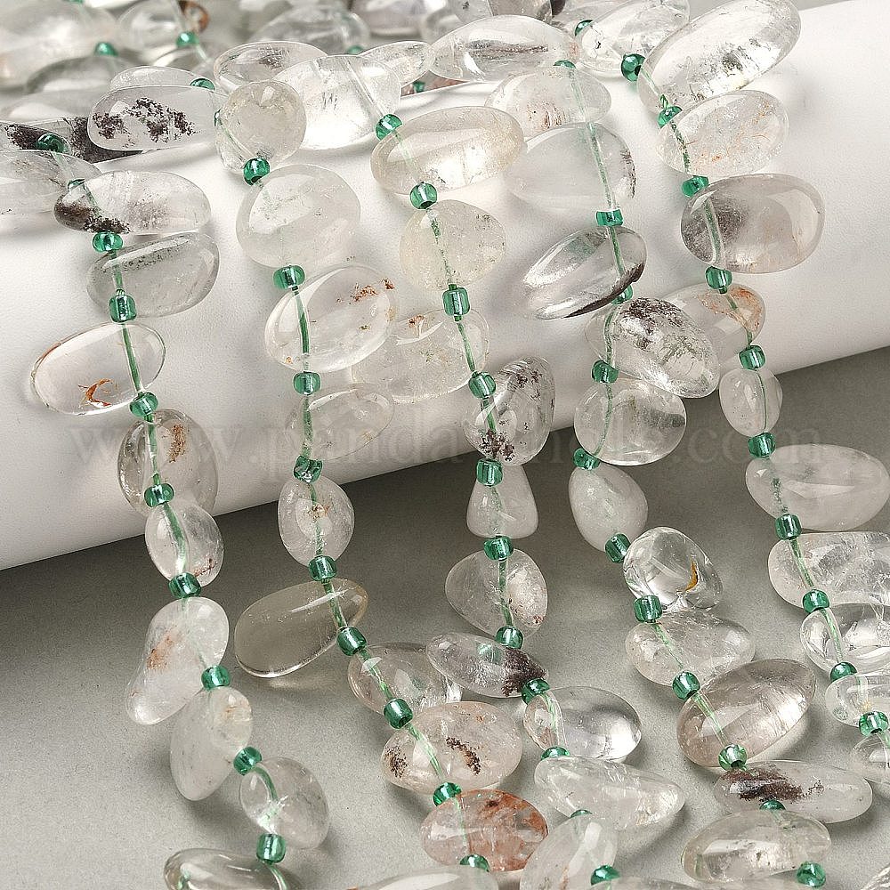 • Лодолит Кварц Натуральный зеленый lodolite кварц бисер пряди, слеза, Топ пробуренной, с бисером, 10~28x8~12x4~8 мм, отверстие : 0.9 мм, около 42~44 шт / нитка, 15.16''~15.55'' (38.5~39.5 см)