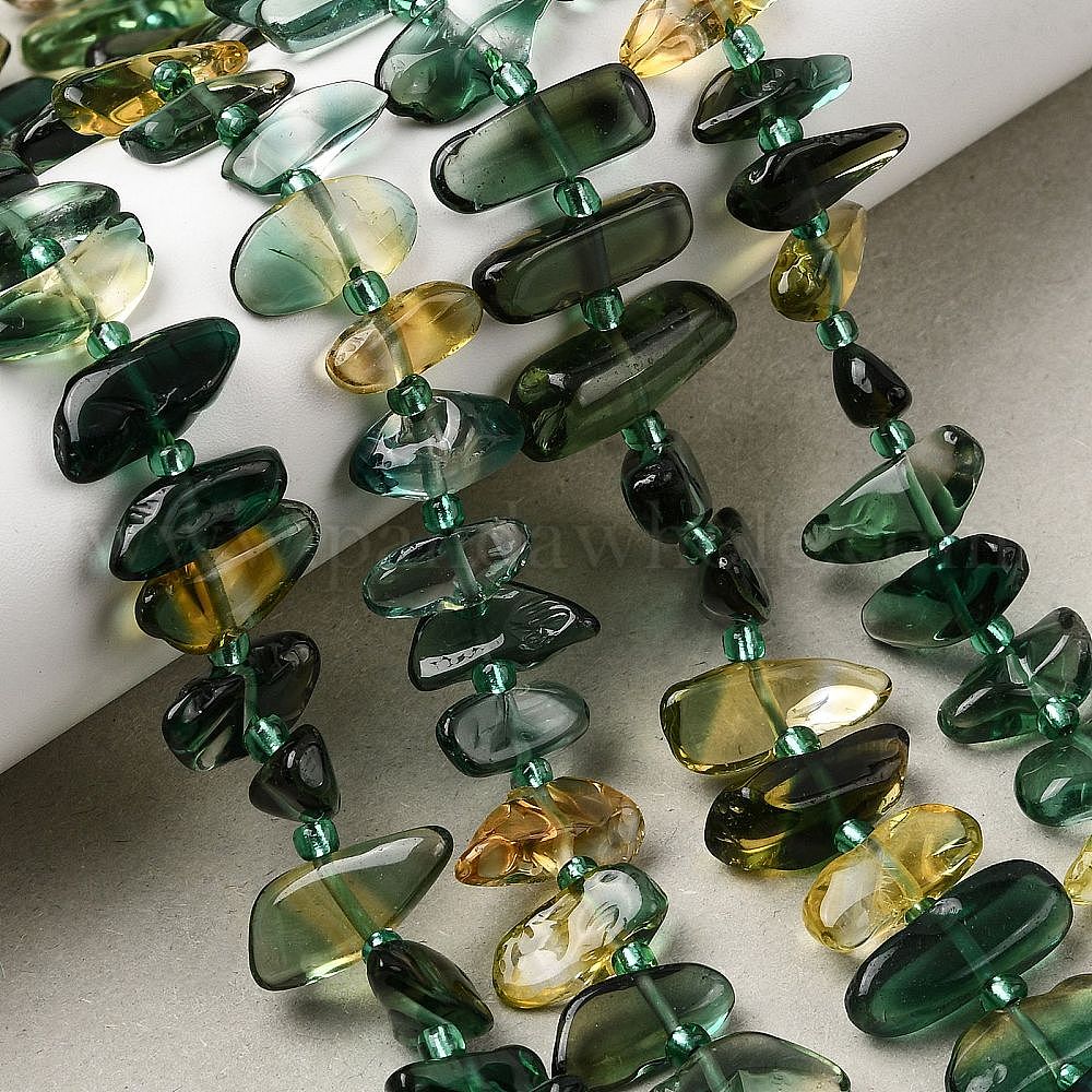 • Другие Кварцы Нити синтетических зеленых и желтых кварцевых бусин, самородки, с бисером, 9~16x4~8x3~8 мм, отверстие : 0.9 мм, около 47~55 шт / нитка, 15.35~16.14'' (39~41 см)