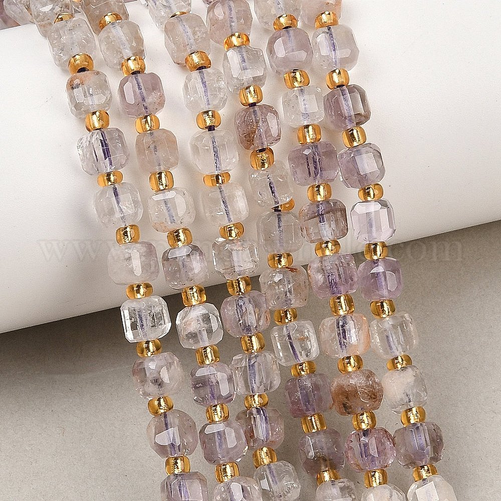 Нити из бусин из натурального фиолетового фантомного кварца/фиолетового лодолитового кварца, граненые настольные бусины в форме куба, с бисером