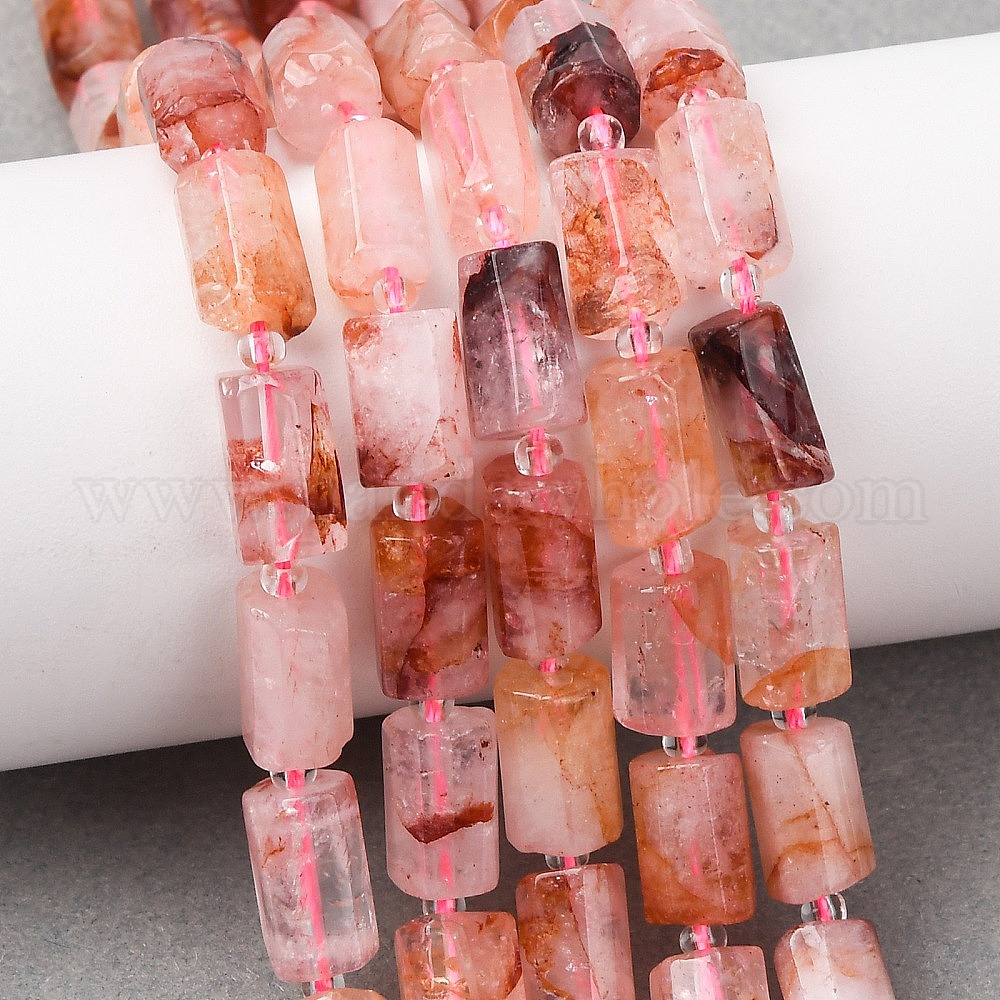 Натуральный гематоидный кварц / нитки из железистого кварца, граненые, колонка, с бисером