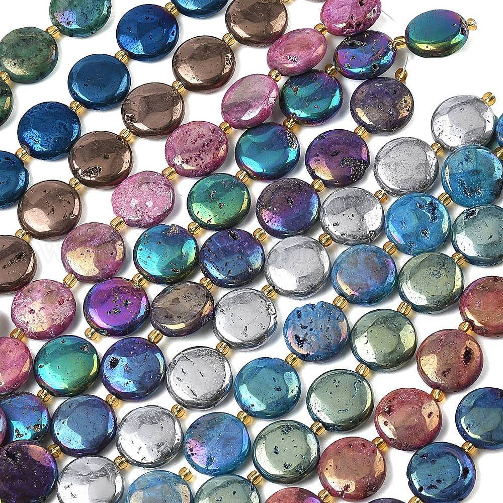 Гальванические природные друзы геод, плоско-круглые, с бисером