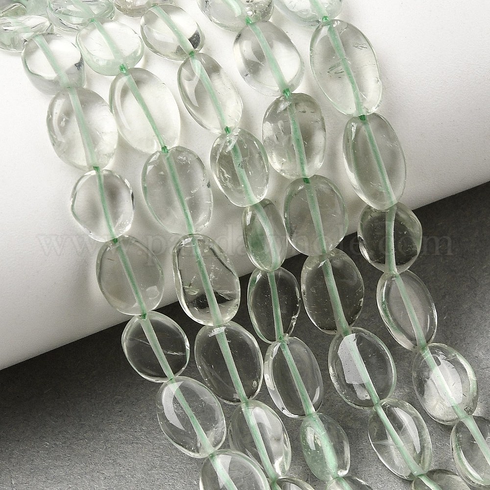 Естественный зеленый кварцевые нити бисера, Плоско-овальные
