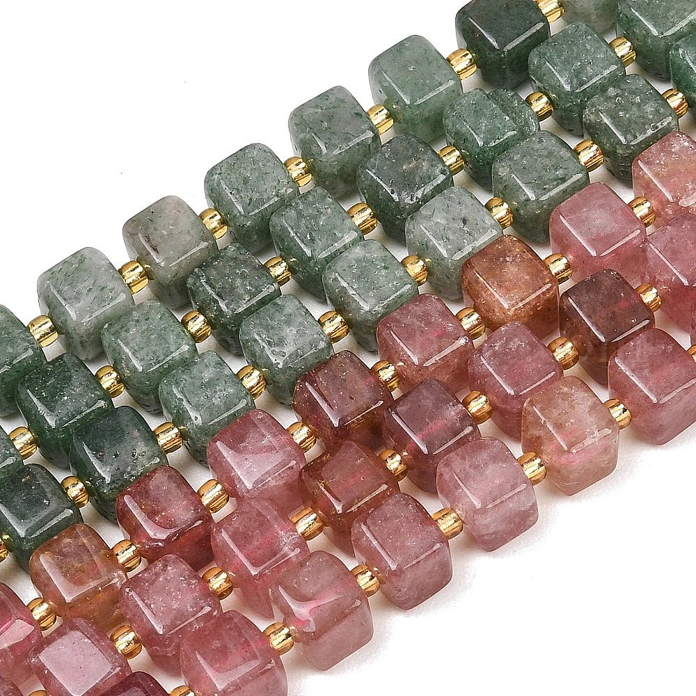 • Клубничный Кварц Натуральный зеленый клубника кварц бисер нити, кубические, с бисером, 8~8.5x8x7~8.5 мм, отверстие : 0.8 мм, около 39~40 шт / нитка, 15.35~15.83'' (39~40.2 см)