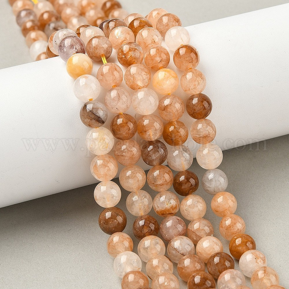 Натуральный желтый гематоидный кварц/золотые целебные кварцевые бусины нити, круглые