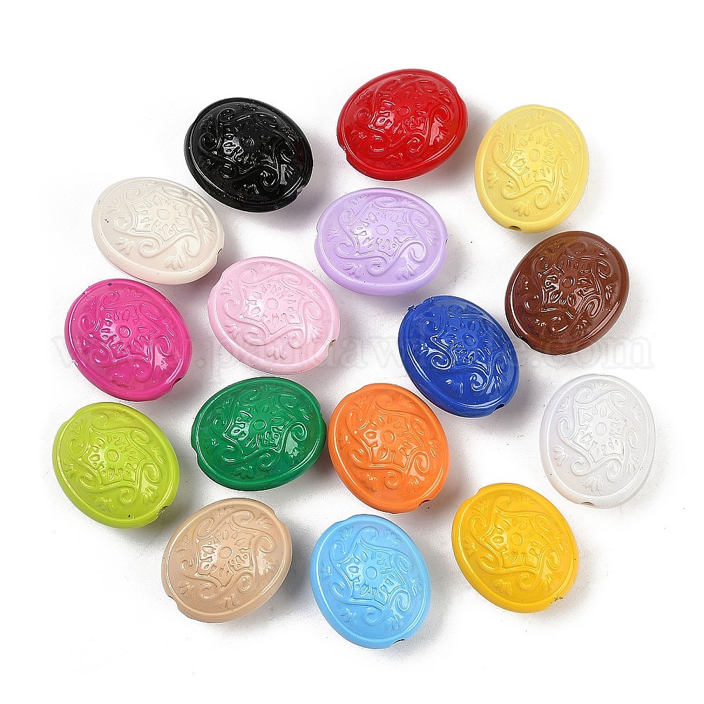 • (52) Непрозрачная лаванда Непрозрачные и окрашенные распылением акриловые бусины, овальные с цветочным узором, разноцветные, 21x18x13.5 мм, отверстие : 1.5 мм