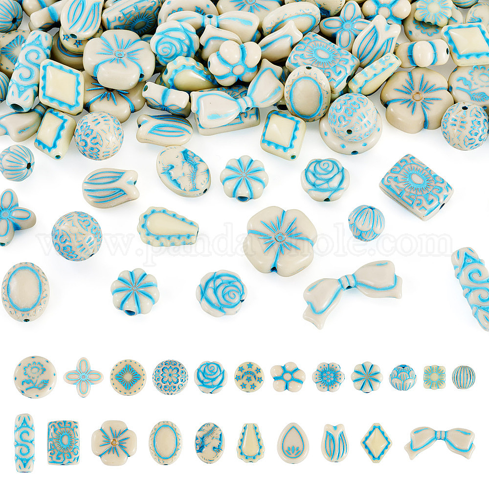 • Светло-Голубой 132шт. 22 стили окрашенных непрозрачных акриловых бусин, разнообразные, Небесно-голубой, 9~20x4~29x3~9 мм, отверстие : 1.2~1.8 мм, около 6 шт. / стиль