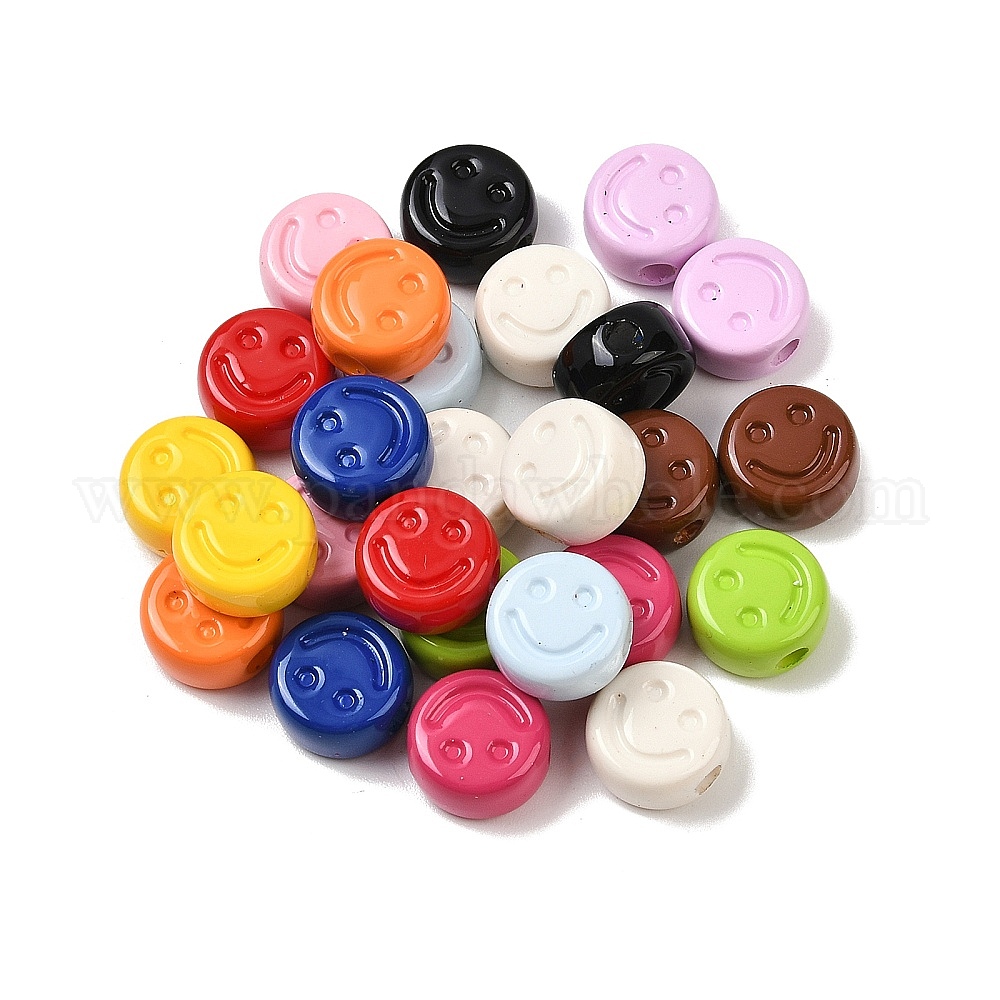 Краска для запекания непрозрачные акриловые бусины, плоские круглые с улыбающееся лицо
