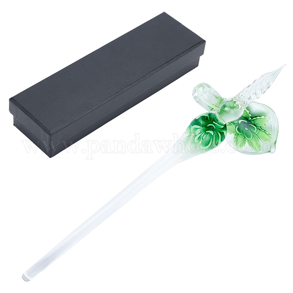 • Зеленый Набор для погружной ручки и держателя для ручки, с цветочным узором и упаковочной коробкой, зелёные, 49~180x26x16x9.5~13 мм, отверстие : 7 мм, 2 шт / коробка