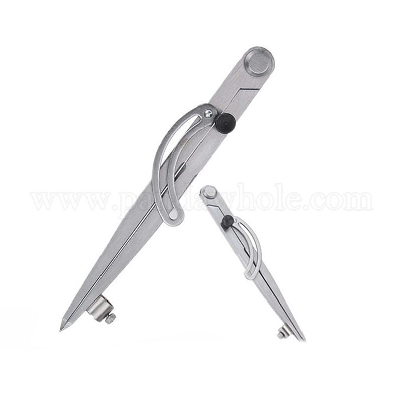 • Нержавеющая Сталь Цвет Профессиональный компас для деревообработки из углеродистой стали, с подставкой для карандашей, запираемый разделитель крыльев, кожаный рабочий компас, писец, инструмент для рисования, цвет нержавеющей стали, 15 см