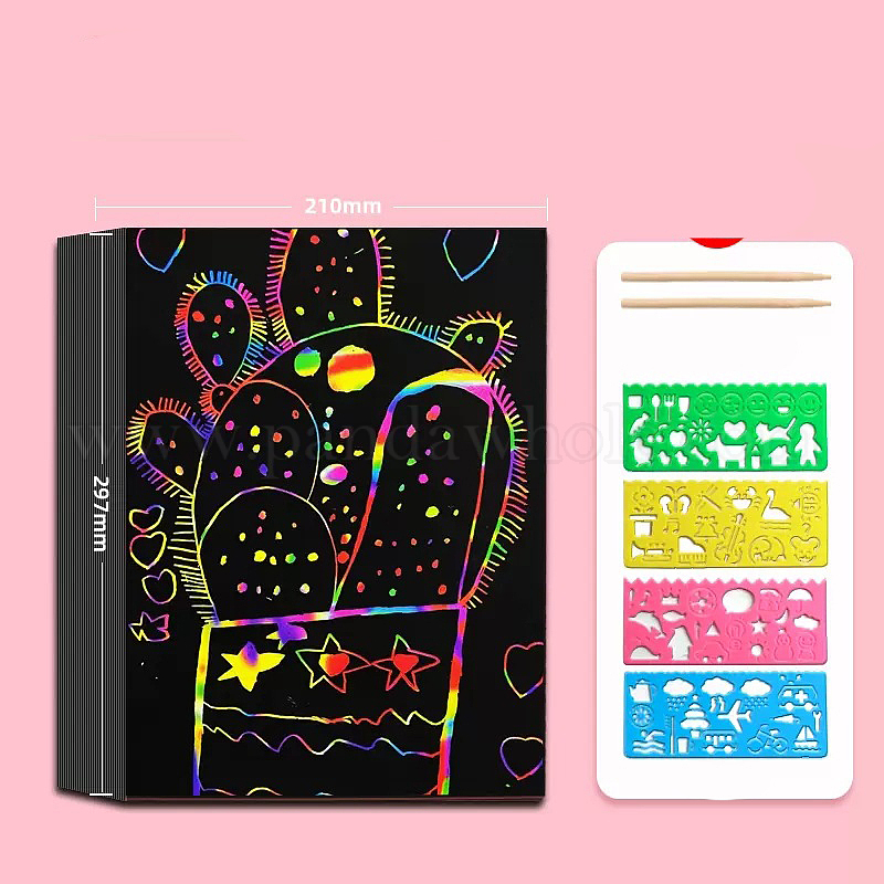 Царапина радуга живопись искусство бумага, самодельное скретч-арт, с 20 листами бумажной карты, 4шт трафареты для рисования и 2шт бамбуковые палочки