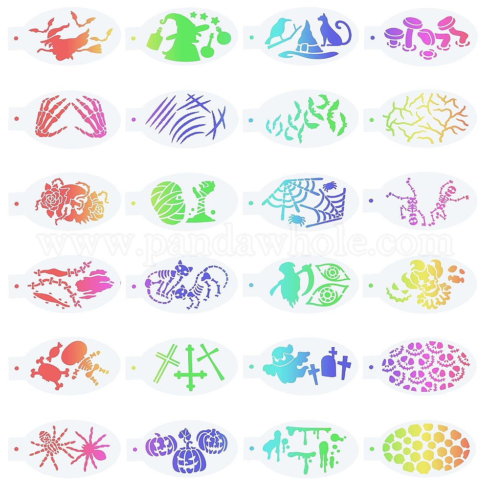 • Skull Пластиковые трафареты для рисования лица, Роспись лица по телу, шаблоны татуировок для школьной домашней вечеринки, Хэллоуин тематический рисунок, 7.5x14x0.01 см, 24 шт / комплект