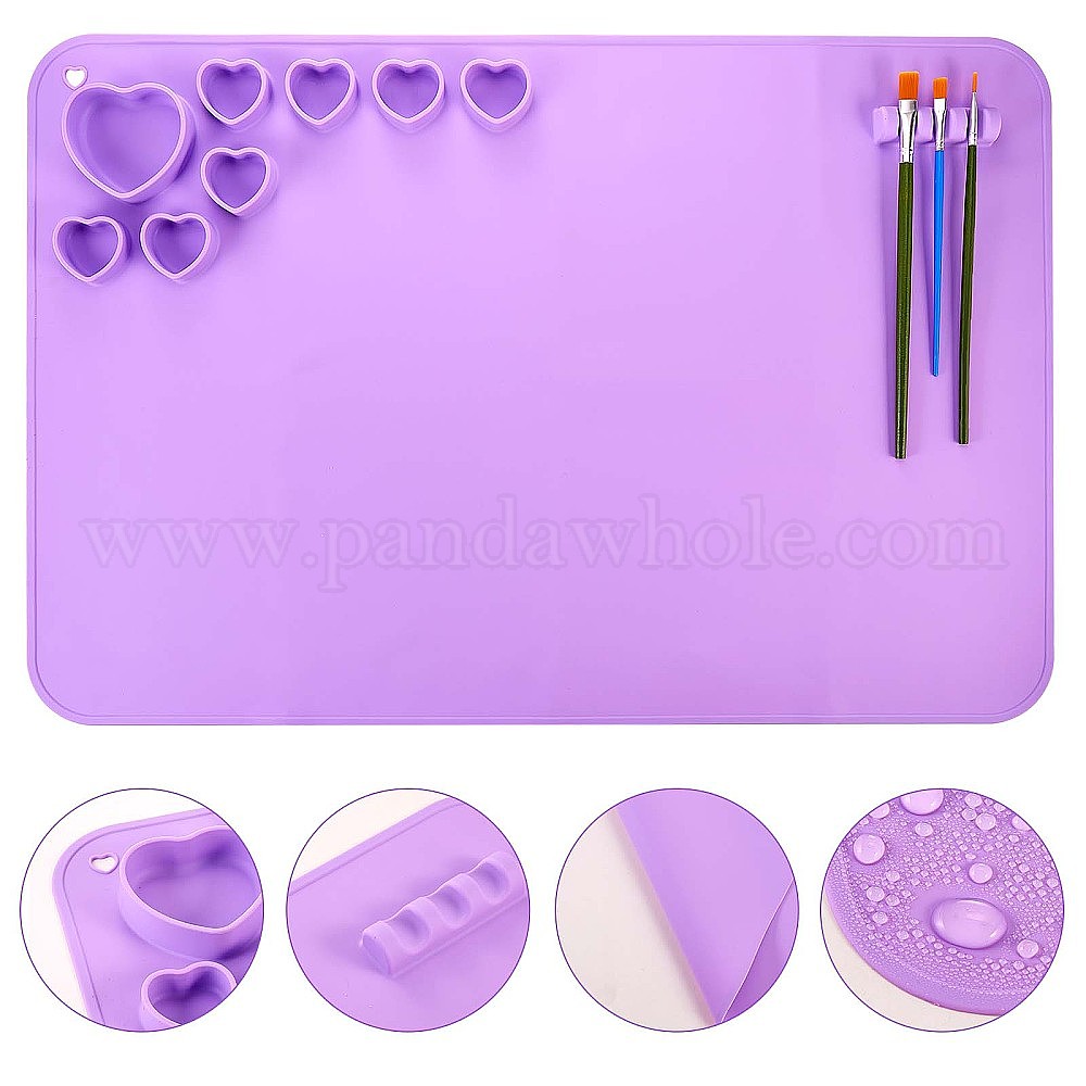 • Фиолетовый 23x15.7 дюймовый креативный моющийся силиконовый коврик для рукоделия, пигментная подушечка для палетки с сердцевидной сеткой и держателем для ручек, для покраски, искусство, глиняные и самодельные проекты, прямоугольные, фиолетовые, 60x40 см