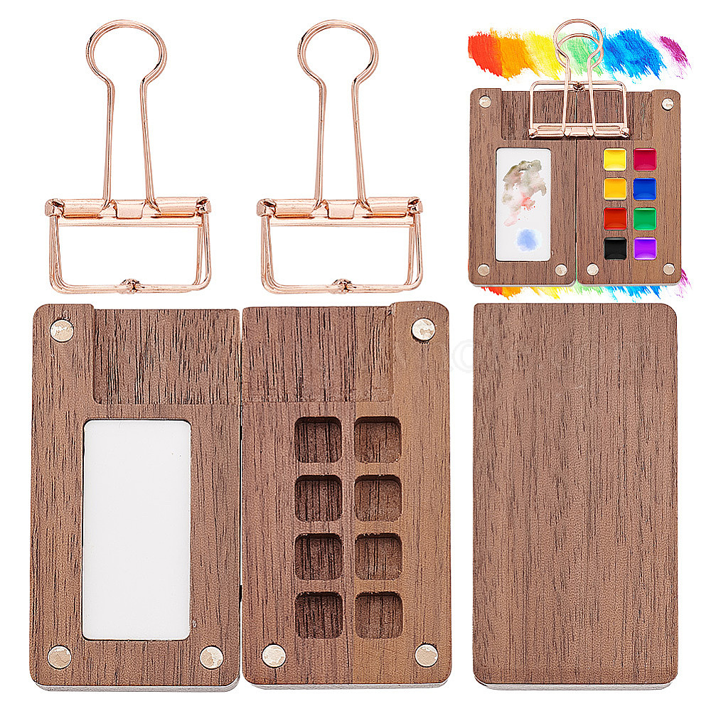Деревянная палитра для акварельных красок, с 8 сетками, ящик для хранения картин, для художественной росписи краски контейнер для хранения, с магнитной застежкой и железными зажимами