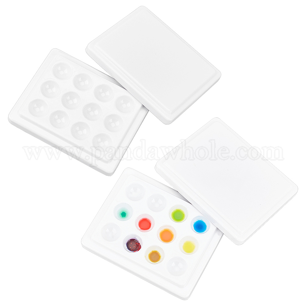 • Белый Пластиковая имитация фарфора акварель масло палитра, принадлежности для рисования и краски, прямоугольные, белые, 9.8x7.85x2.05 см, Внутренний диаметр: 1.5 cm