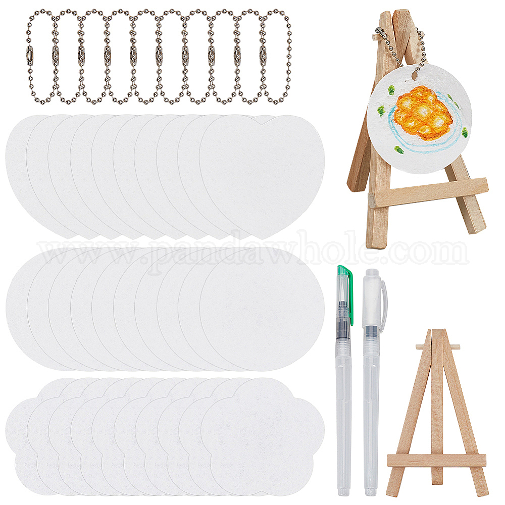 30шт. инструменты для самостоятельного изготовления акварельных акварельных картин из древесной целлюлозы, с 30шт. железными шариковыми цепочками для ценников, 3шт. складной настольный мольберт из сосны, 1 набор пластиковых перьевых ручек, с нейлоновой щеткой