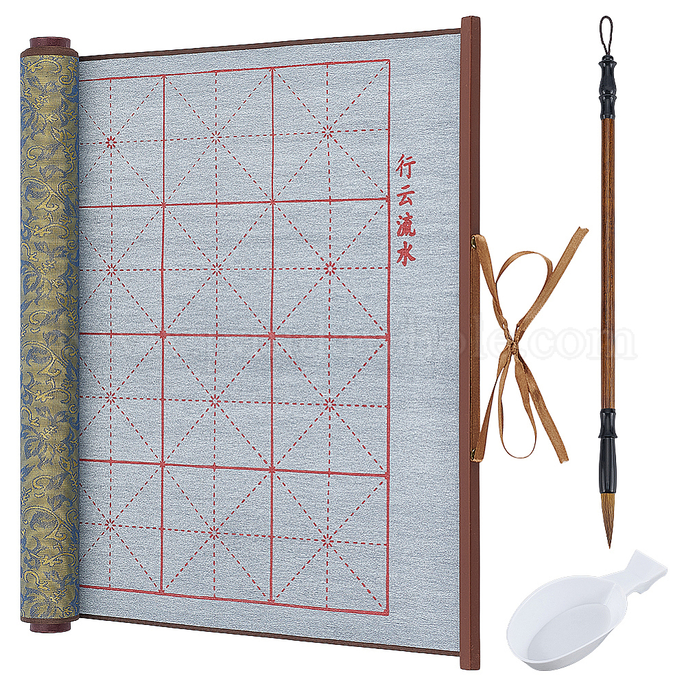 Прямоугольный нетканый материал и парчовая ткань для письма водой, с кистями для китайской каллиграфии, пером и ложкой в форме лотков для чернил (03816C)
