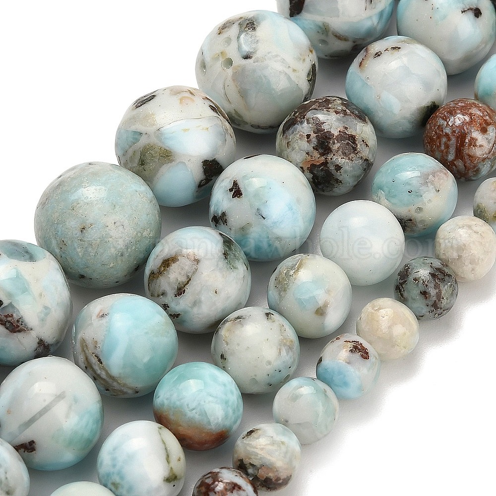 • Ларимар Природные ларимар бисер нитей, круглые, 12 мм, отверстие : 1.4 мм, около 34 шт / нитка, 15.55 дюйм (39.5 см)