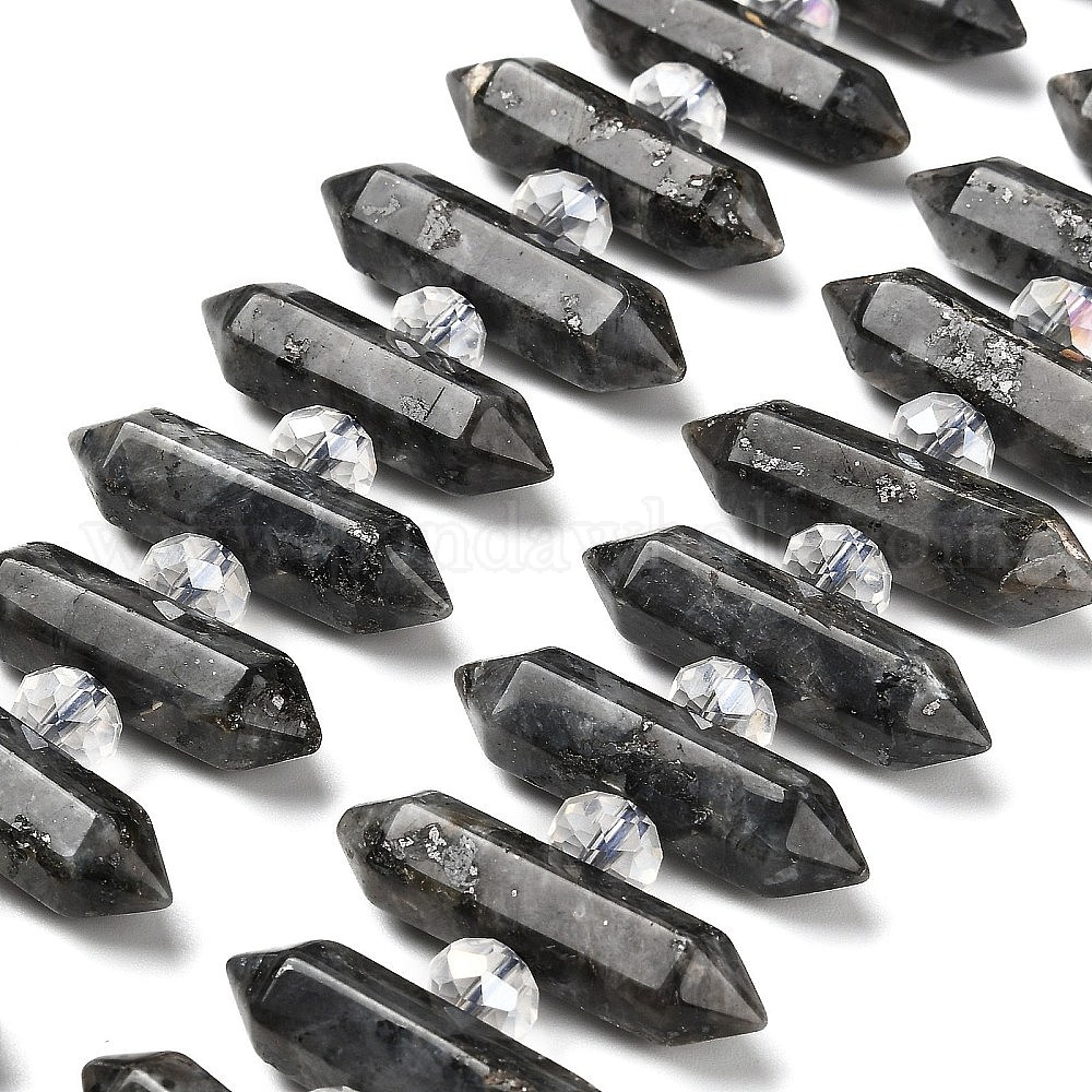 Нити бусин с двойным концом из натурального ларвикита, со стеклянными бусинами, граненый пуля