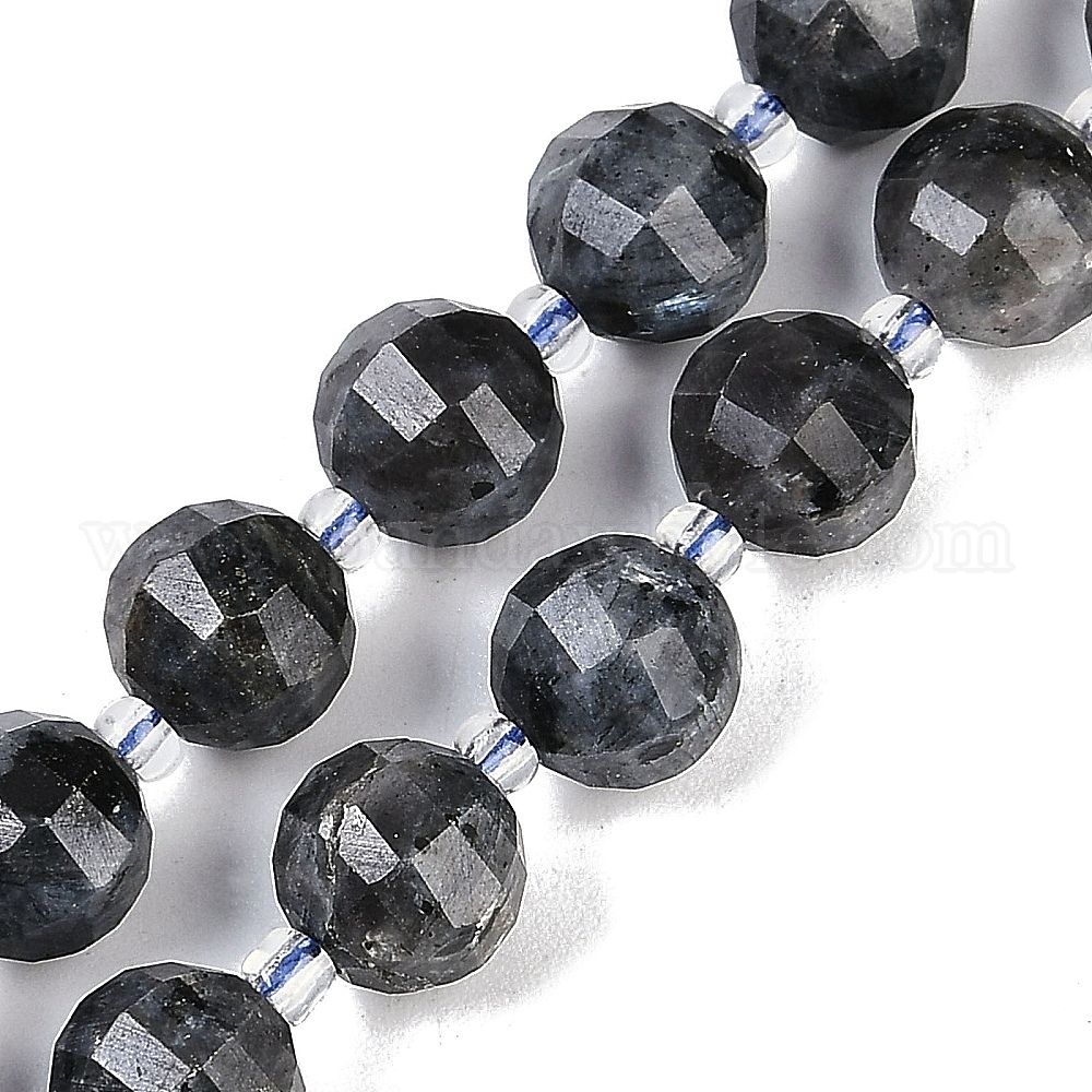 • Larvikite Натуральные нити бус из ларвикита, граненые, фонарь, с бисером, 8 мм, отверстие : 0.9 мм, около 38~41 шт / нитка, 15.31''~15.51'' (38.9~39.4 см)