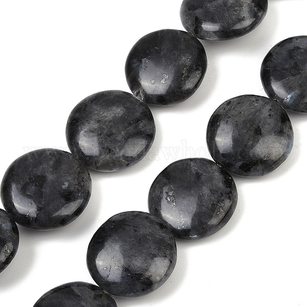 Натуральные нити бус из ларвикита, плоско-круглые