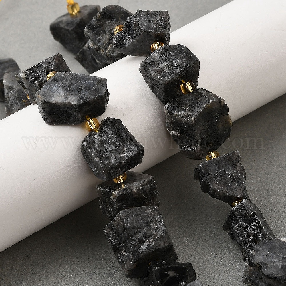 Необработанные грубые натуральные бусины из ларвикита, самородки, с бисером
