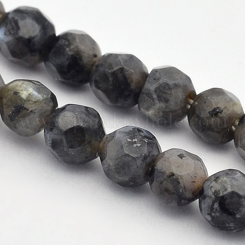 Граненые круглые нити натуральных бус из ларвикита (00GECF)