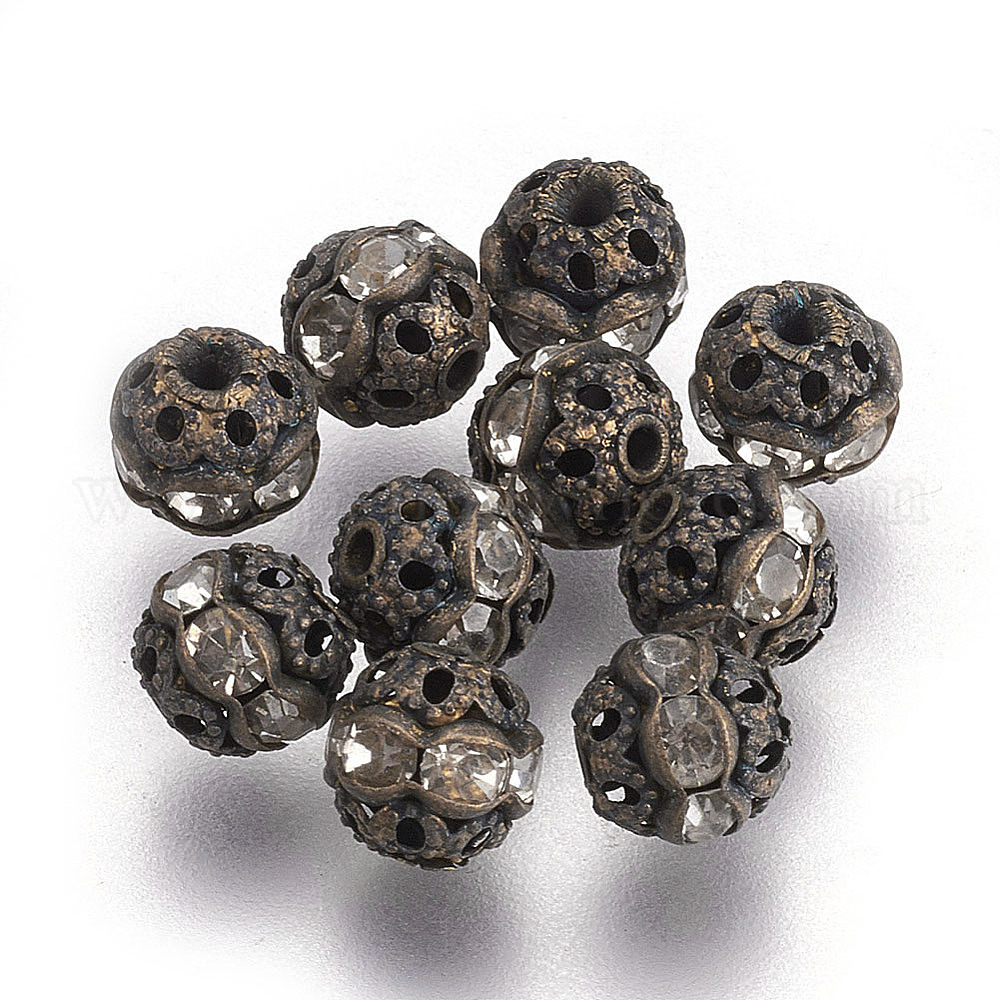 Латунные бусины со стразами , класс А, без никеля , античная бронза, круглые, 6 мм диаметром, отверстие : 1 мм
