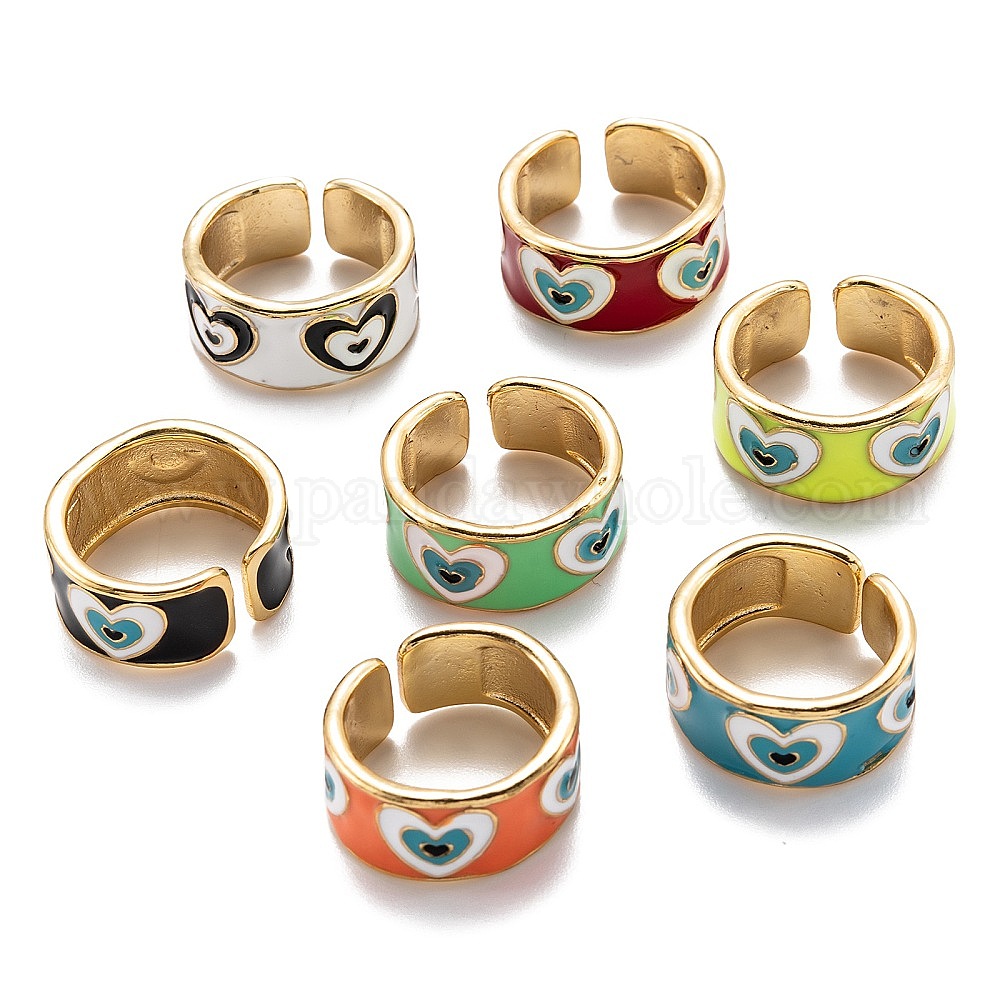 Манжеты с латунной эмалью, открытые кольца, долговечный, сердце, золотые