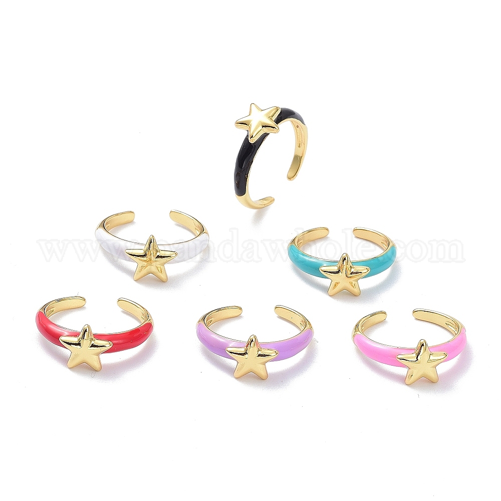 • (52) Непрозрачная лаванда Манжеты с латунной эмалью, реальный 18 k позолоченный, долговечный, звезда, разноцветные, размер США 7 1/4 (17.5 мм), 2~4 мм