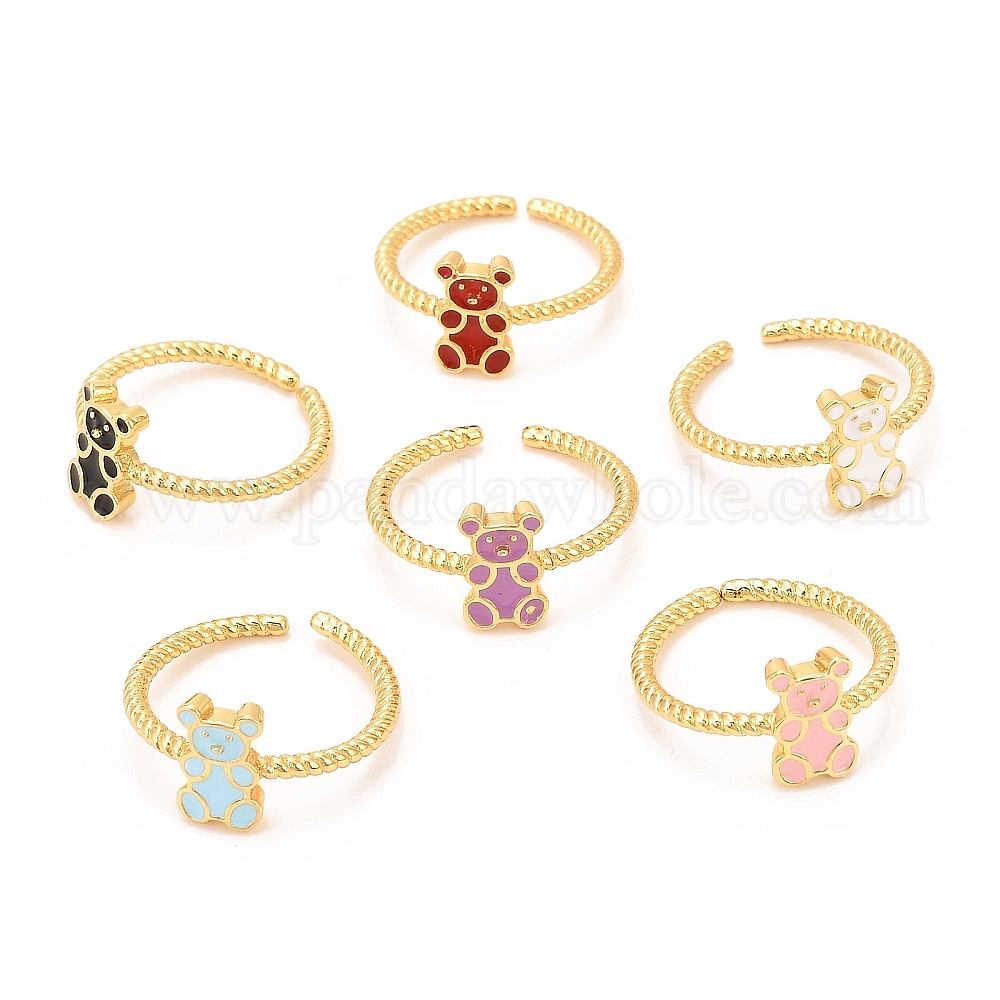 Кольцо-манжета с эмалью из латуни, реальный 18 k позолоченный, медведь
