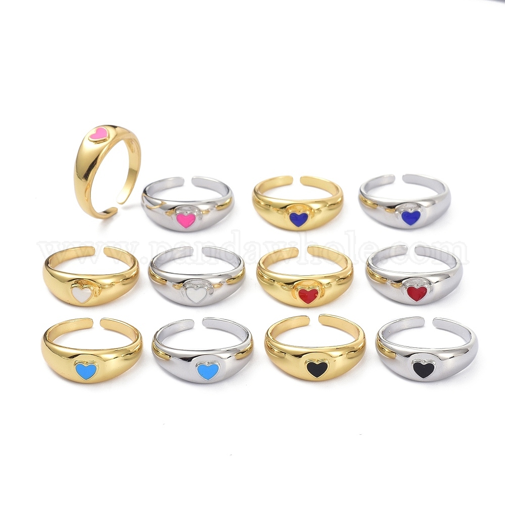 Открытые манжеты с эмалевым сердцем, регулируемые латунные эмалевые кольца для пальцев для девочек-подростков, долговечный