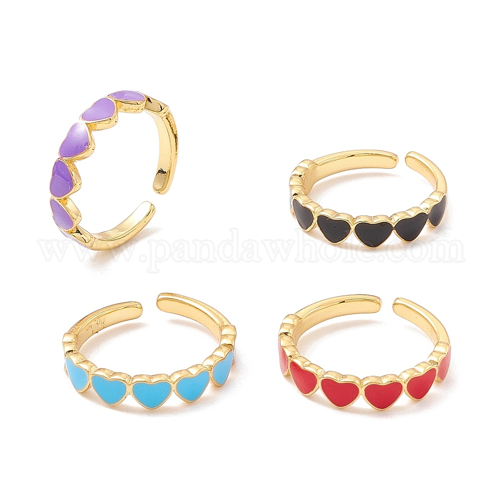 Кольцо-манжета с эмалью в форме сердца, долговечное открытое кольцо из латуни с покрытием для женщин, золотые