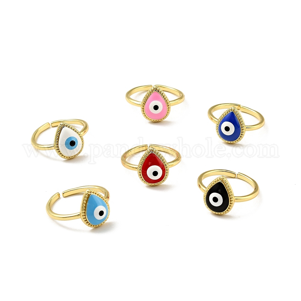 Эмалевая капля с дурным глазом открытое кольцо-манжета, позолоченные латунные украшения для женщин, без кадмия и без свинца
