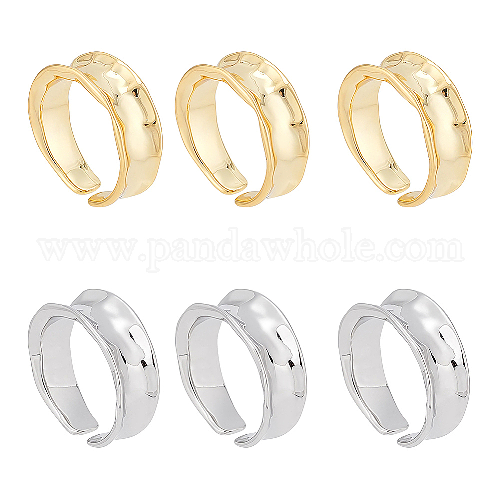 6 шт 2 цвета латунь волна открытое манжетное кольцо для женщин