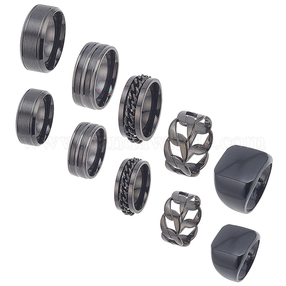 10шт 10 стили латунные прямоугольные кольца-печатки, 201 цепочки из нержавеющей стали, кольца для мужчин, складывающиеся в стопку