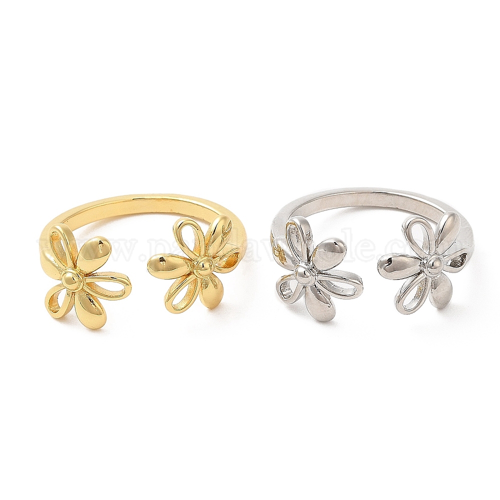 Стойки с покрытием из латуни, открытые манжеты с цветком, кольца для женщин, без кадмия и без свинца (02K1EK)