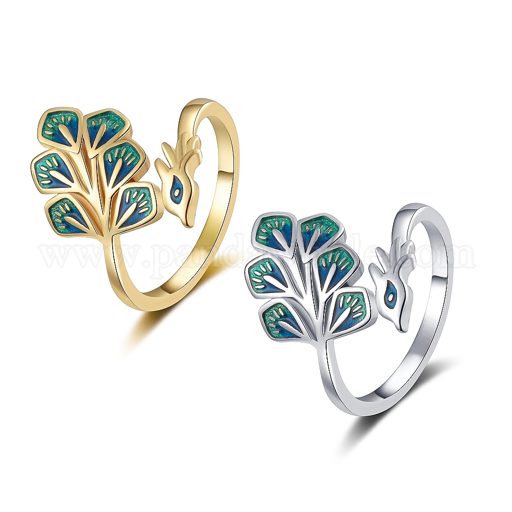 Латунные открытые манжеты для женщин, с эмалью, павлин