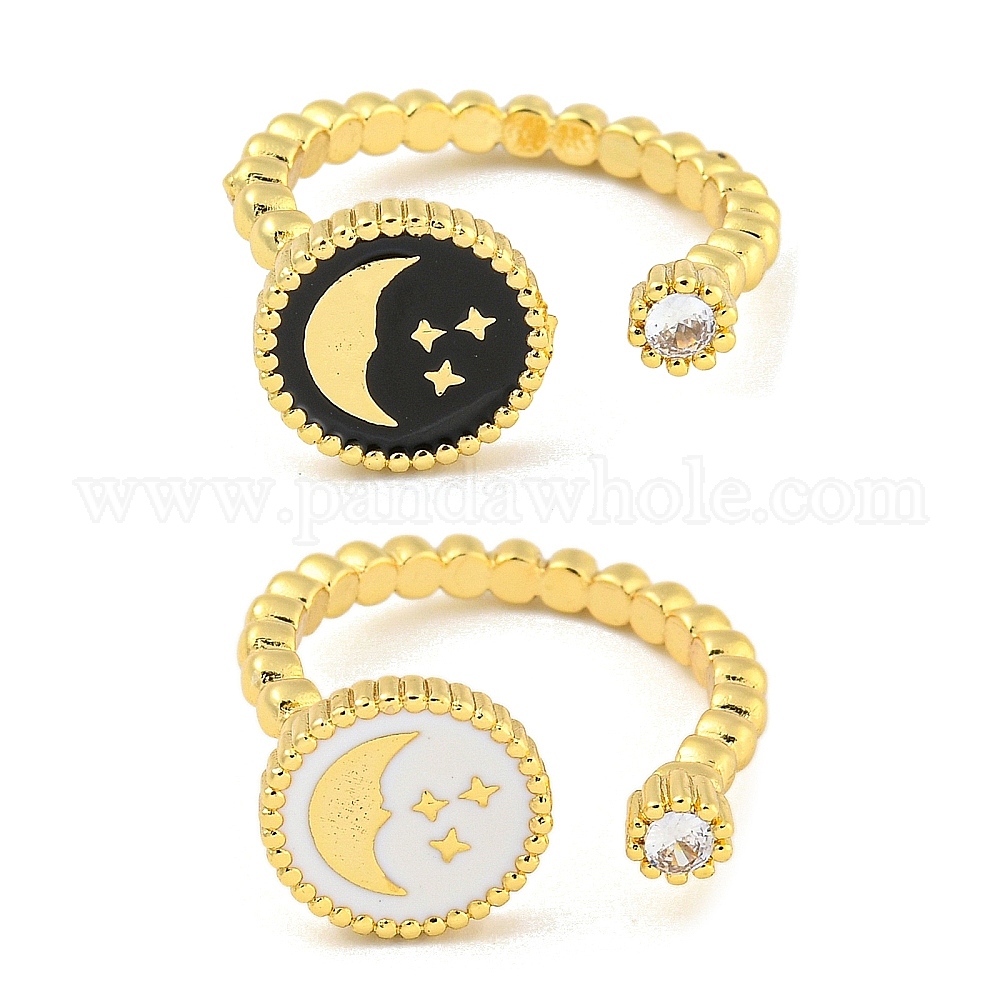 Плоские круглые со стойкой в виде лунной звезды, покрытие из латуни, микропаве, кубический цирконий, открытые манжеты, эмалированное кольцо для женщин, без свинца и без кадмия, долговечный