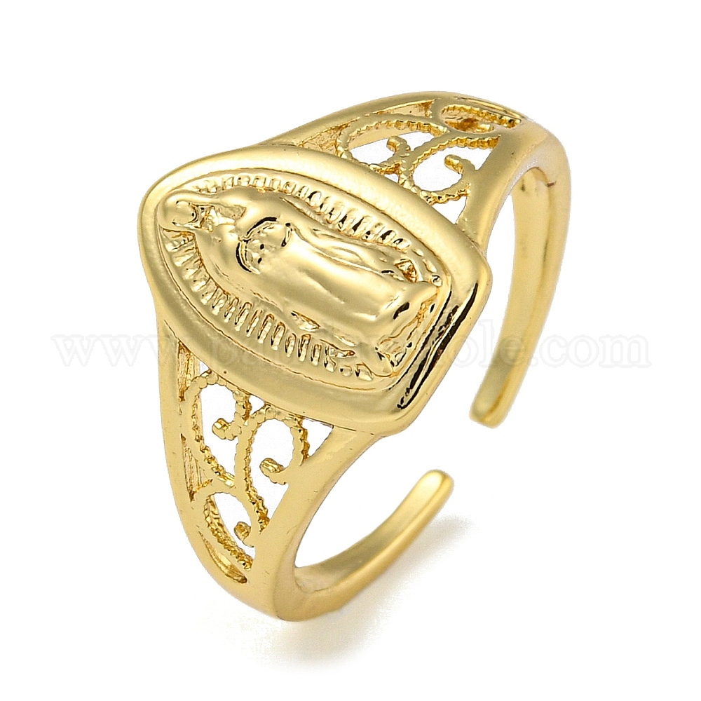 • Настоящее золото 18K Овальные латунные открытые манжеты с Девой Марией для женщин, без кадмия и без свинца, реальный 18 k позолоченный, 13.5 мм, регулируемый
